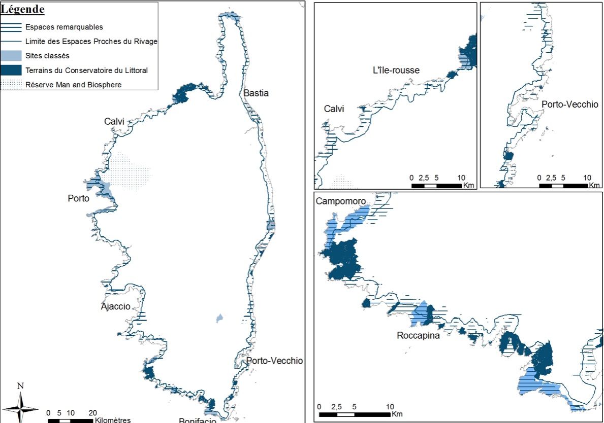 Figure 2. La protection des espaces naturels littoraux Source données: DREAL CORSE – Conception et réalisation: C. Tafani, 2010