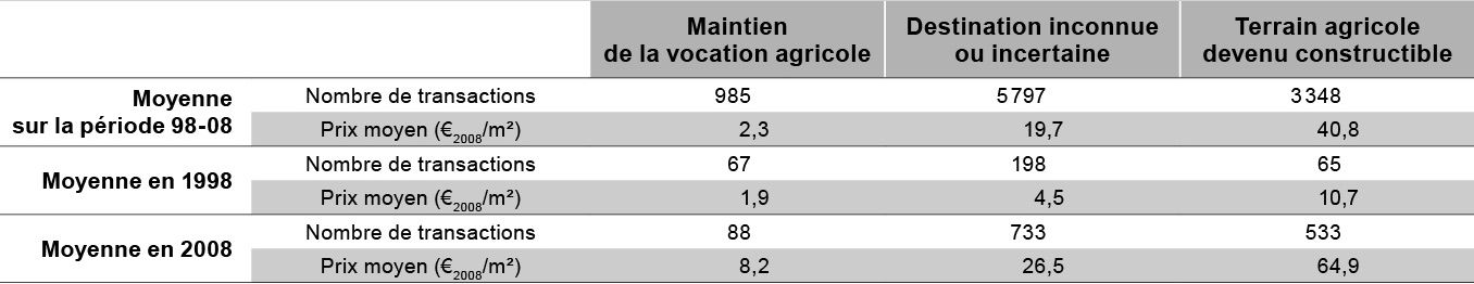 Sur la période 1998-2008, moins de 10% des parcelles agricoles ayant fait l’objet d’une transaction ont conservé leur vocation initiale.