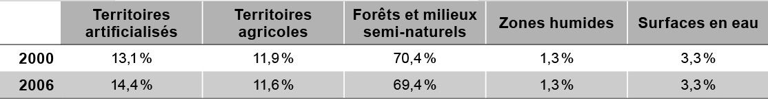 Cette progression semble se faire au détriment des espaces naturels; la part relative des espaces cultivés étant remarquablement stable (tab.2).