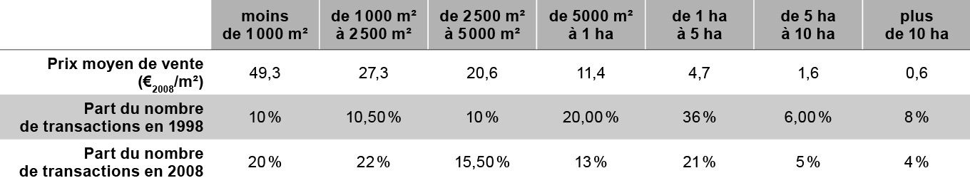 En outre, la part des transactions concernant des lots de moins de 2 500 m² a plus que doublé entre 1998 et 2008, contrairement aux lots les plus grands (tab. 5).